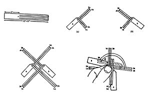 Take 4 strands connected at the bottom. Begin by bending one strand away from you (pointing north), another strand over this and pointing to your left (pointing west), another strand over this toward you (pointing south). The last strand will point to your right and be placed over the 3rd and under the 1st (pointing east). Thus you have a strand going in each direction and are ready to weave.